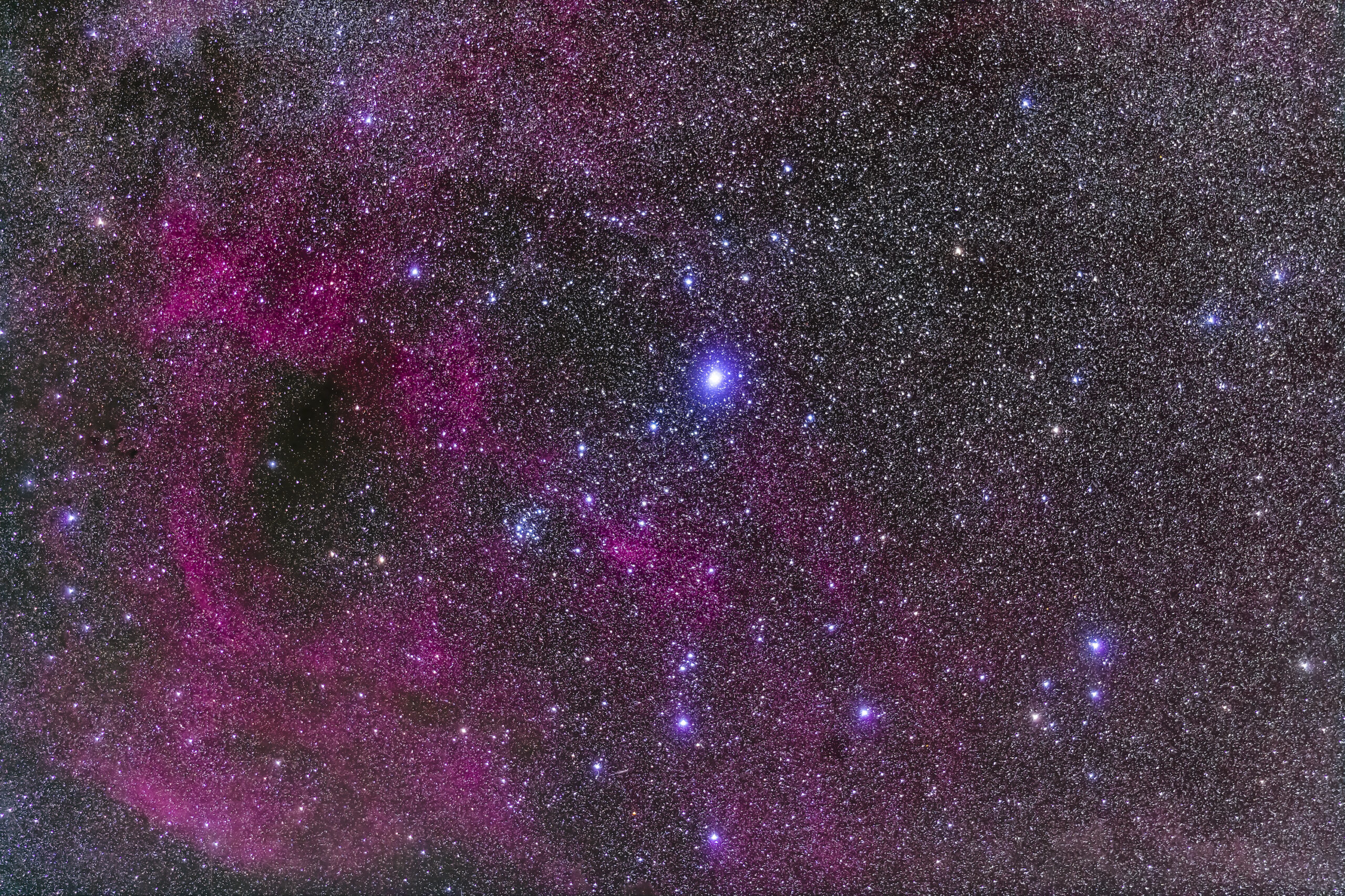 The brightest WR star visible to everyone in the Northern Hemisphere is 6.7-magnitude HD 190918, also known as SAO 69402 and numbered 133 in the catalog of known Milky Way WR stars. WR 133, which also has an O-type companion star, is associated with NGC 6871, a young open star cluster located near the center of the “cross” in Cygnus.