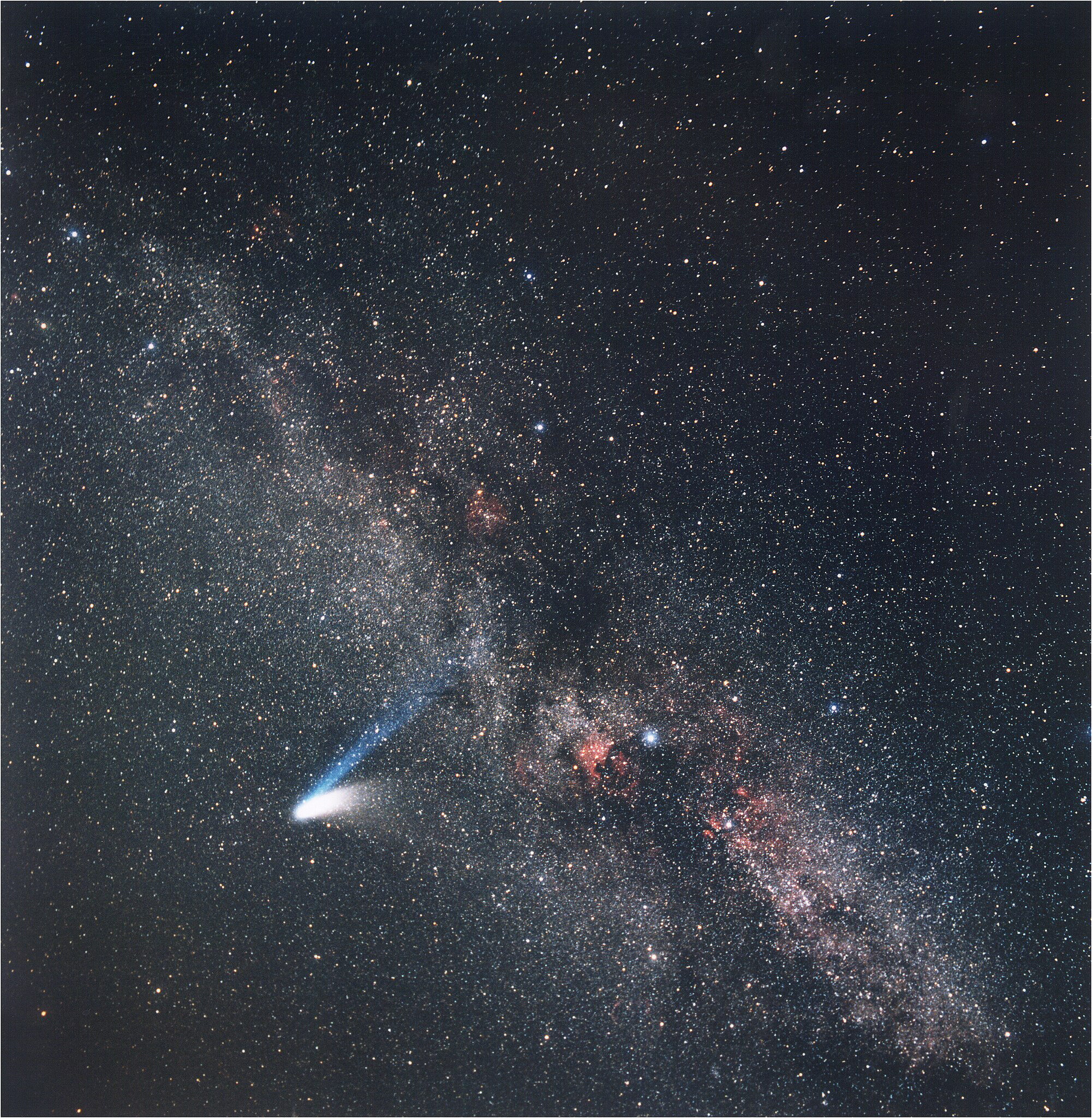 Today, Hale-Bopp is part of history. It was a Great Comet, rivalling those seen in centuries past, and it delighted millions of people. Many thousands of photos were taken of it around the world in the spring of 1997 — on expensive 24- or 36-exposure slide and print film, not today’s cheap memory cards that can store thousands of images — but none of them come anywhere near capturing how lovely the comet was, or how it felt to stand there in silence, on those balmy March and April evenings, just staring at it as it shone in the sky like a visitor from another universe much more beautiful than our own.