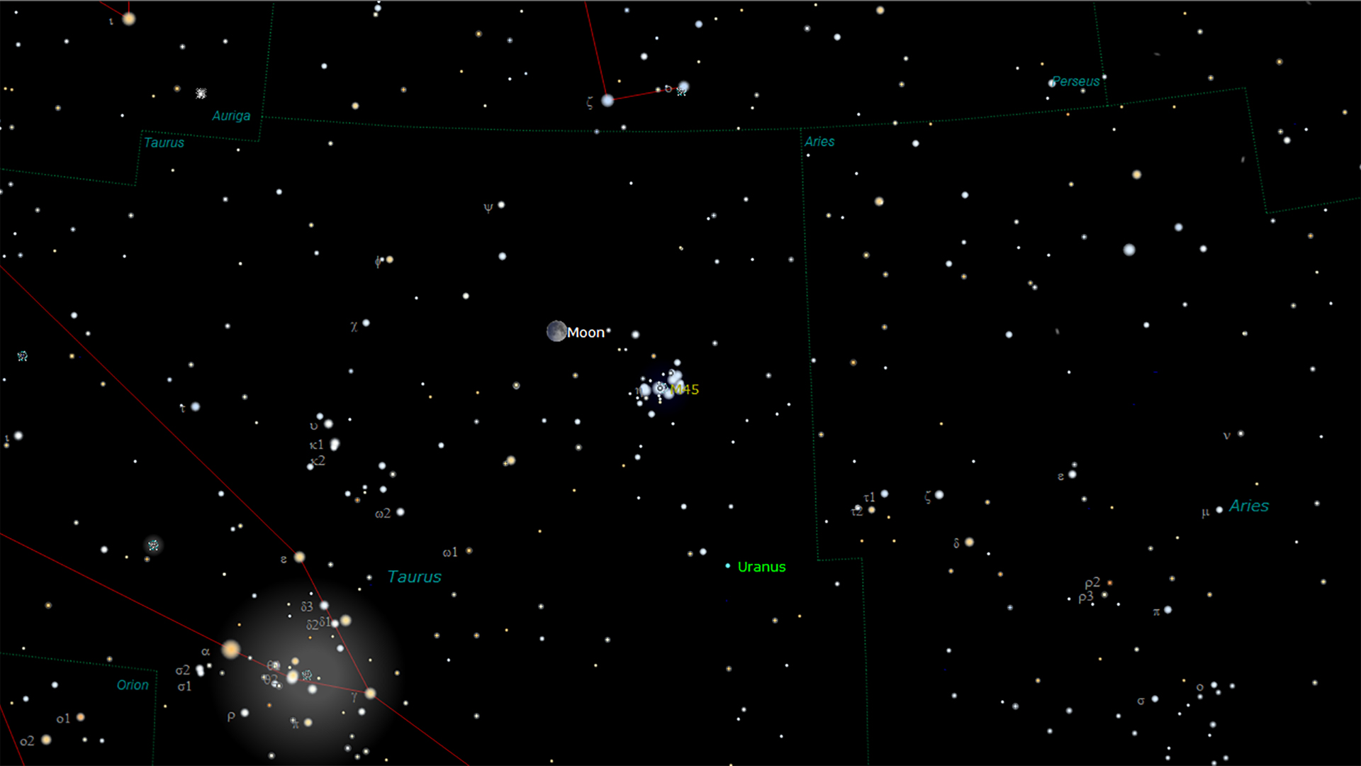 On January 27, the Moon will pass close by the Pleiades (M45), an open star cluster in the constellation Taurus the Bull. Head out that evening and watch.
