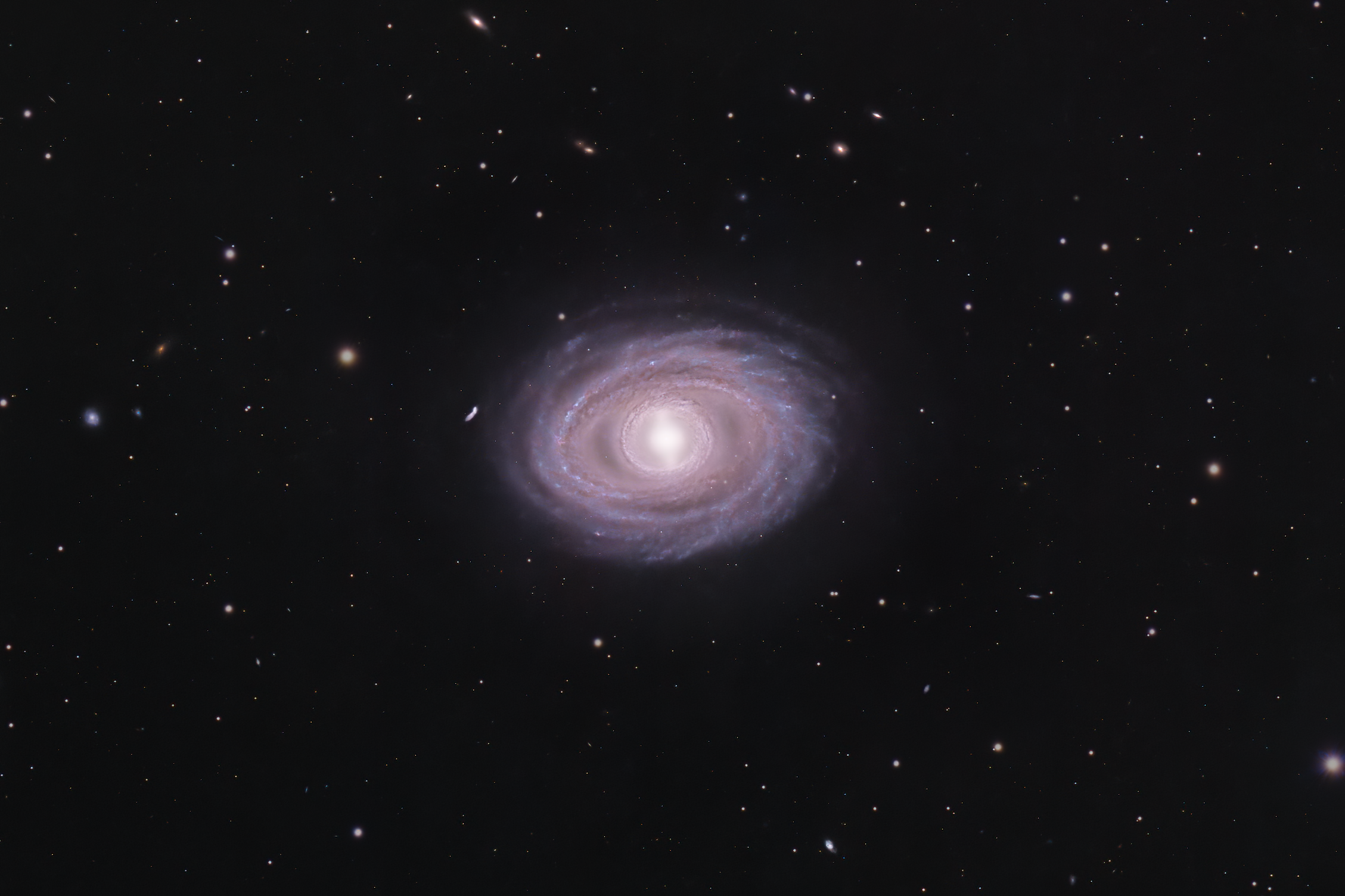 NGC 1398 is a barred spiral galaxy some 65 million light-years distant in Fornax. While it may appear to have a double ring structure, high-resolution imaging reveals the rings are tightly wound spiral arms. The imager used a 5-inch scope to take 19¾ hours of LRGB exposure.