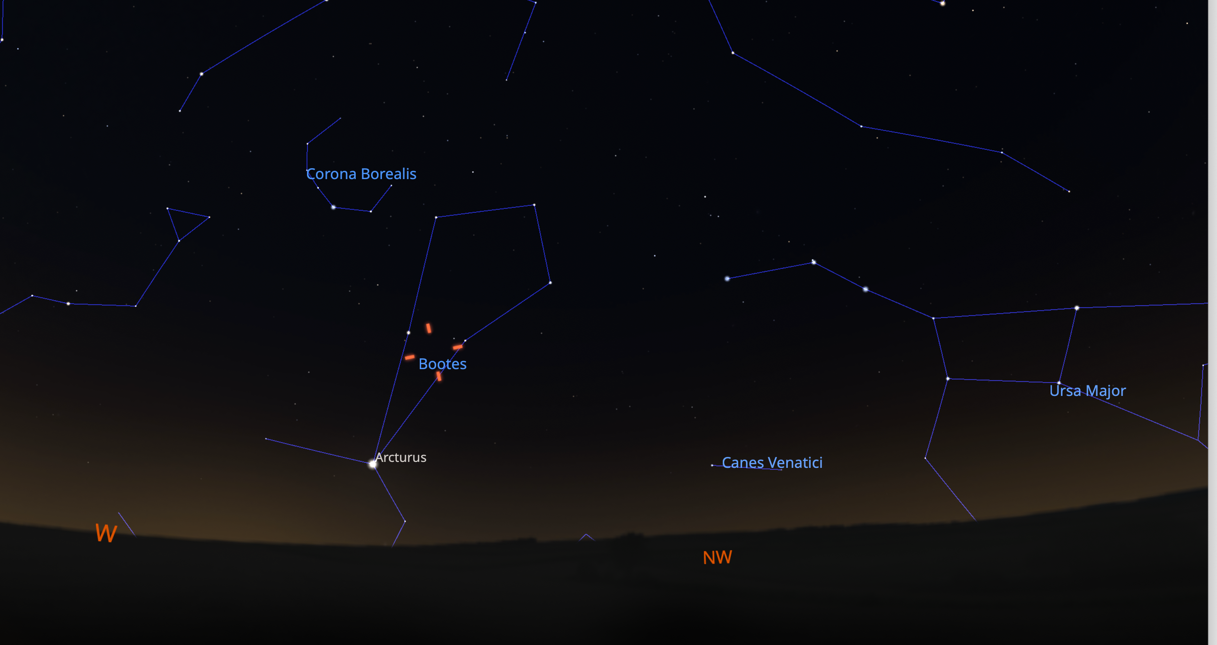 - Discovered on January 3, 2025, by the Mount Lemmon Survey, the comet will appear in the northwestern sky, transiting through constellations such as Canes Venatici and Boötes, near the Big Dipper and Arcturus.