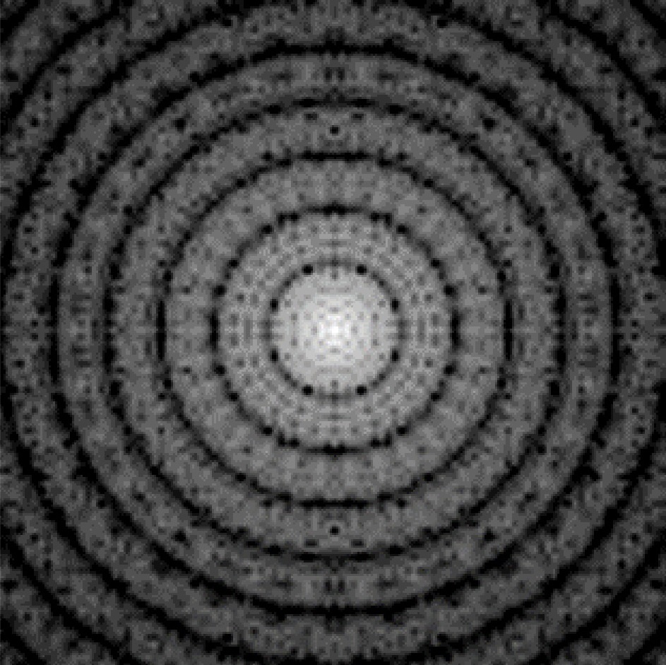 A simulation of ELF’s point spread function — the way an image of a bright star appears when the light from all its mirrors is combined. The mirrors create an image with a lobulated structure that looks almost like a sunflower. Credit: