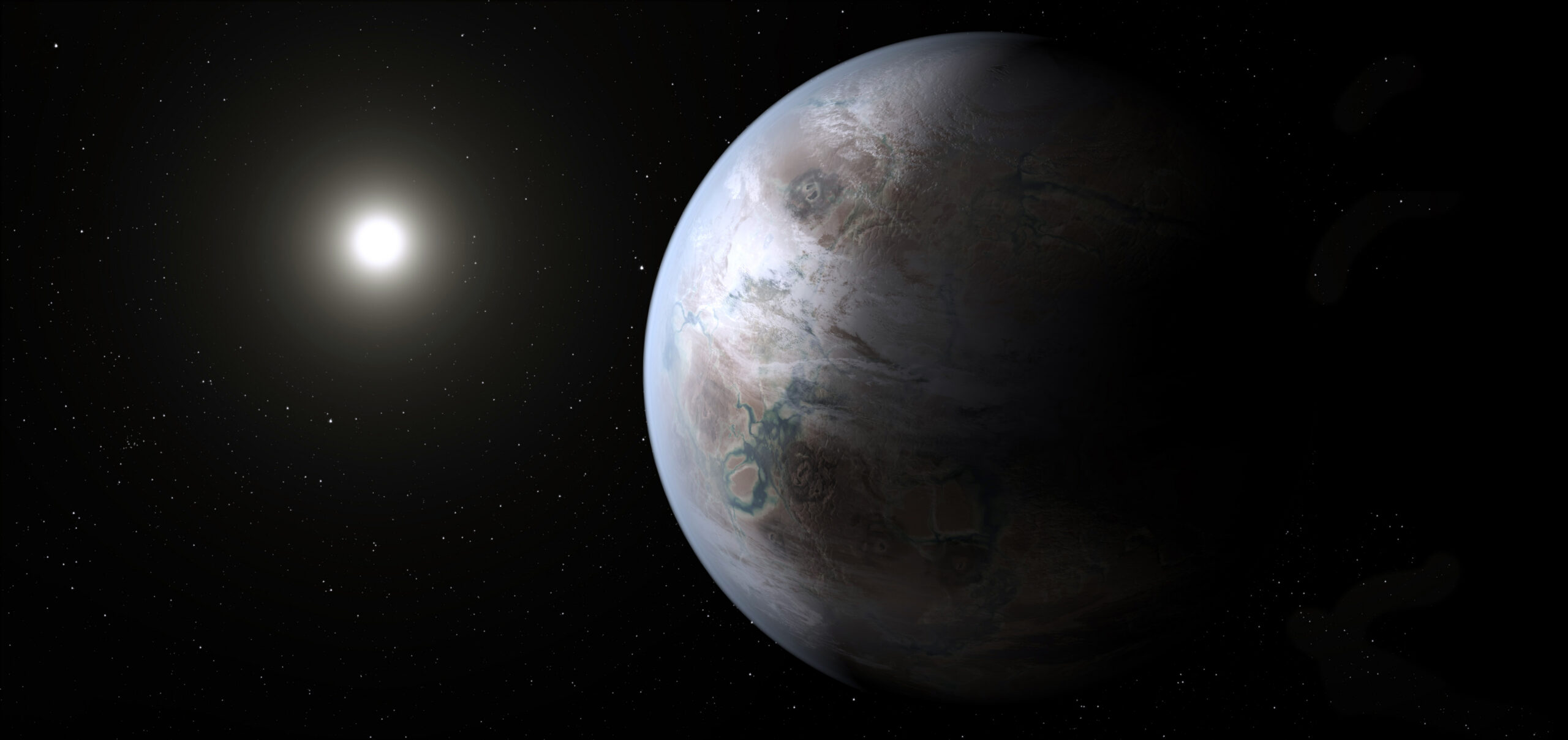 This artist’s concept shows the roughly Earth-sized Kepler-452 b (foreground) as a planet much like our own. Although this image is just a guess, ELF could soon let us map planets such as this to determine whether (and where) they have oceans, land, and even vegetation, turning artistic imaginings into reality. Credit: NASA Ames/JPL-Caltech/T. Pyle