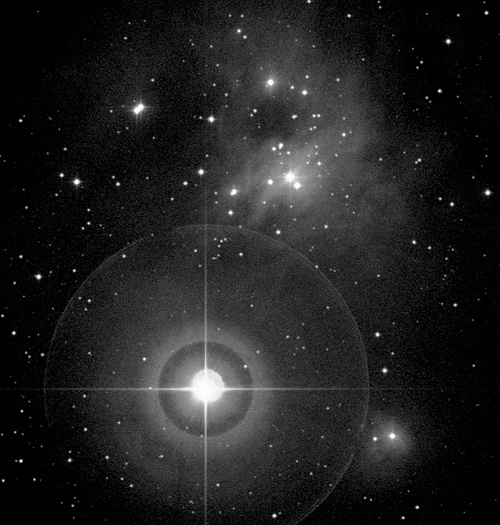 But what if the star isn’t that hot? Its light still can scatter off the gas atoms and dust, in much the same way light scatters off a fog bank on Earth. The most famous reflection nebulae are the wisps surrounding the Pleiades star cluster in Taurus and the wonderful blue and yellow clouds around Rho Ophiuchi near Antares.