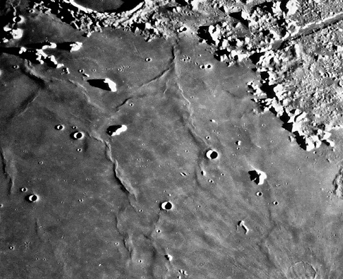 Prominent mountain ranges lie near both peaks. North of Mt. Piton lie the lunar Alps, named after the magnificent range in Europe. West of Mt. Pico are the Teneriffe Mountains, a cluster of peaks that dot the northern shore of the Imbrium basin.