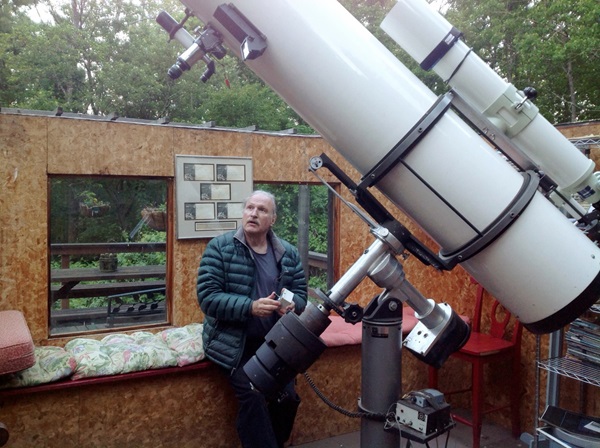 What are my credentials? I own all three basic telescope types. I have an original Celestron sandcast C8 and a beloved C5 that is truly portable and tracks the stars while powered only by a 9-volt battery. In 1982, I built a 12-by-18-foot (3.7 by 5.5 meters) motorized roll-off-roof observatory to house my new Meade research-grade 12.5-inch f/6 reflector. Its rotating tube on bearings was one of the universe’s great ideas, because it allowed the user to position the eyepiece at any convenient location. Gone were the times when you’d have to possess wings and somehow be positioned above the instrument, 8 feet (2.4 m) above the ground, to look through it. I still use that observatory today.