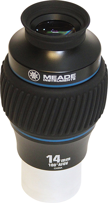 The Meade Series 5000 Xtreme Wide Angle 14mm 100° Eyepiece features blackened lens edges and internal surfaces as well as a parfocal design for little focus change between eyepieces of the series. It offers a 100° apparent field of view.