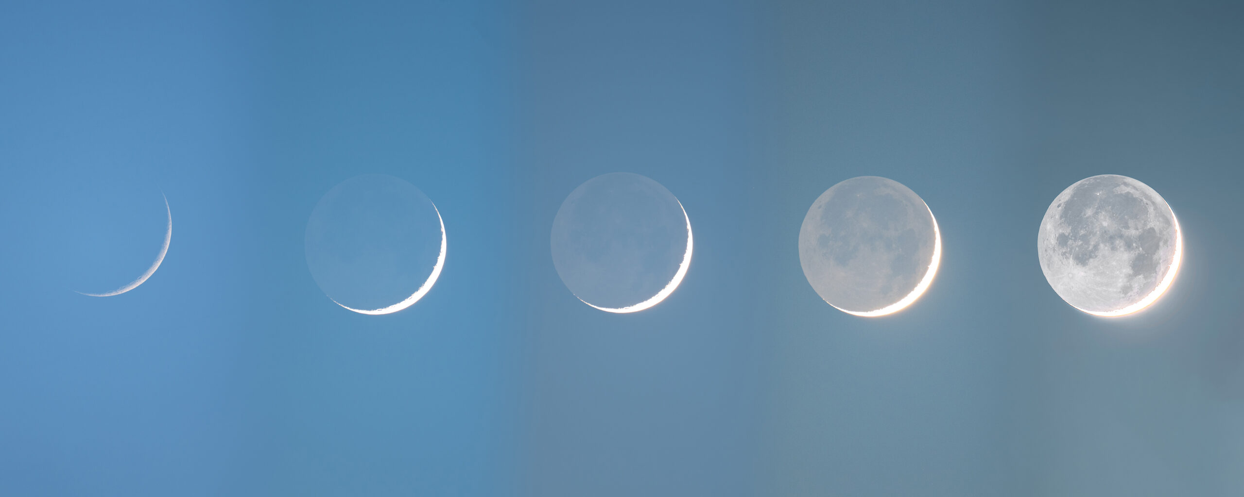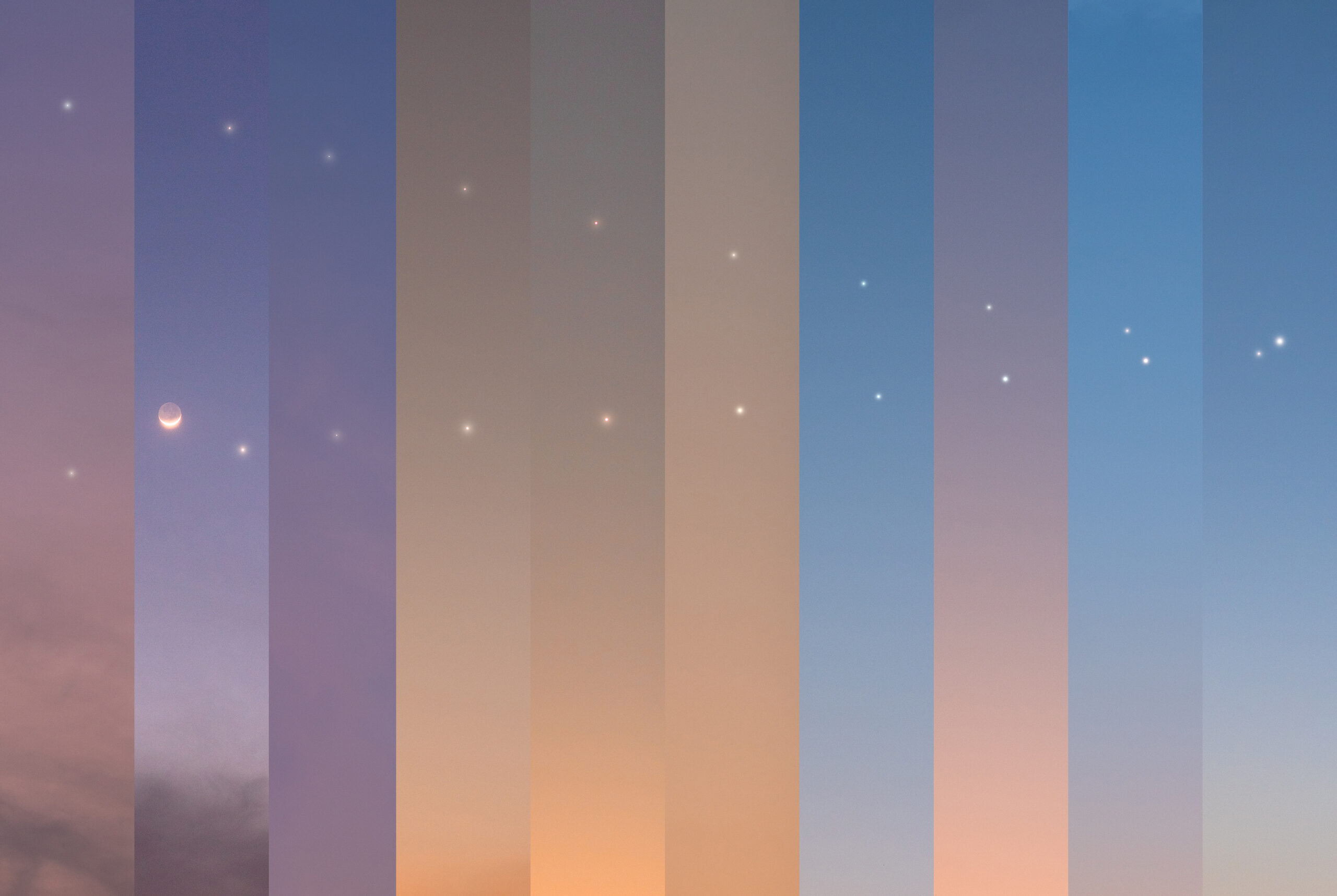 A much shorter project, only a few hours long, can be done with a bright planet like Venus or with a crescent Moon. Focus on these in the twilight period and capture the changing sky background. Start just before or at sunset when Venus or the Moon becomes visible. Then take an image during sunset, civil twilight, nautical twilight, astronomical twilight, and astronomical night. Such images of Venus in particular will slowly reveal the background stars as darkness falls, and are ideal if it’s in or near a prominent region in the sky (like Sagittarius). If your target is the crescent Moon, you’ll capture earthshine as well as the background stars.