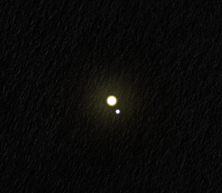 For something more colorful in an otherwise bland region, look for Lambda (λ) Ursae Minoris. At magnitude 6.4, this red giant is visible to observers with excellent vision, located between Polaris and Delta (δ) UMi, the next star in the handle of the Little Dipper. The red color is visible in small optics. Astronomer James Kaler noted on his STARS website that, due to Earth’s 26,000-year processional wobble, Lambda was closer to the North Celestial Pole than Polaris several hundred years ago and the pole will fall between the two stars around 2060. A double star, Lambda’s companion is 14th magnitude and 55″ away. However, with no detailed observations in the last century (even professional astronomers avoid this landmark, it seems!), Kaler added it could simply be a faint background star.