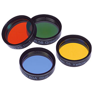 Planet observers use the Wratten series of color filters developed by Eastman Kodak for photography. The series contains more than 100 different hues, but don’t feel obligated to buy them all. A selection of four or five filters will get you going, and you can always add more for specific observing purposes. Although high-end camera stores carry Wratten filters, you’ll be better off getting ones that screw into eyepieces. As with nebula filters, be sure the filters have the same thread size as your eyepieces.