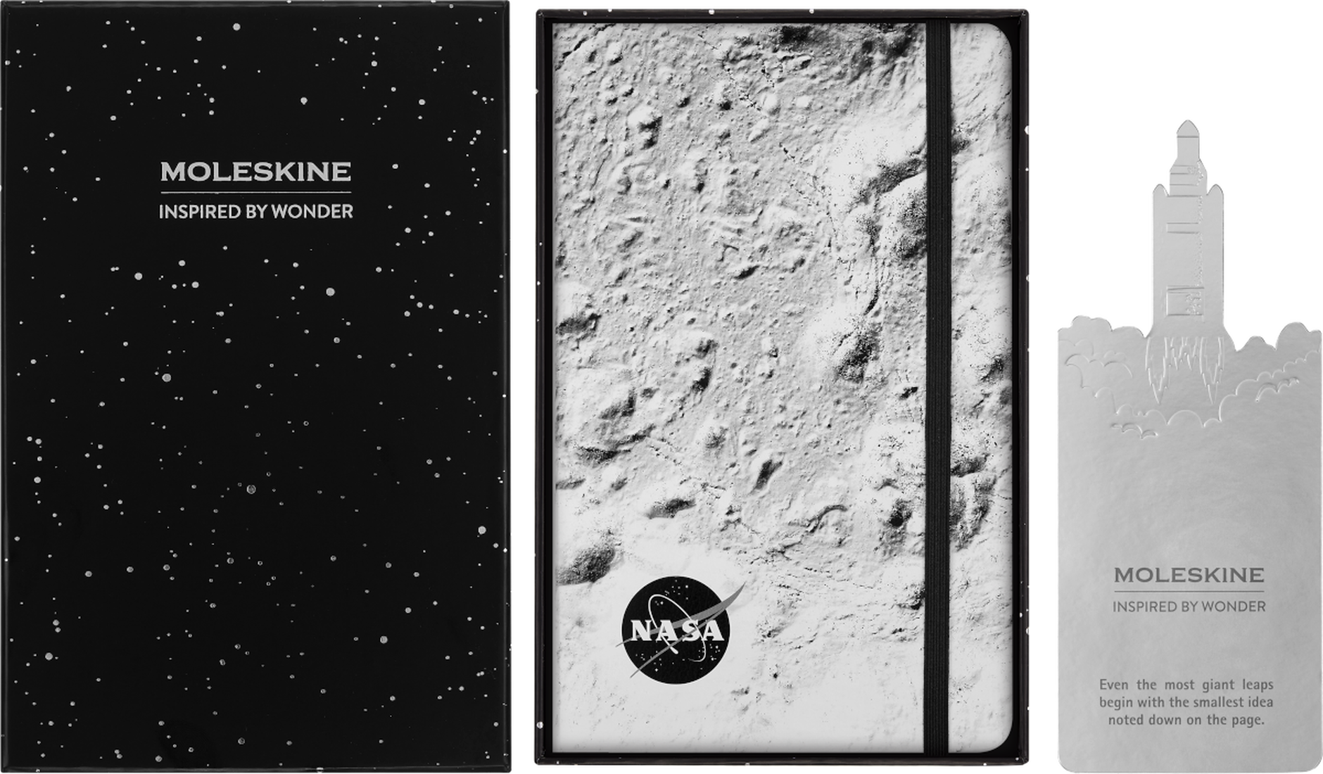 Moleskine’s NASA-inspired Limited Edition Notebook boasts a large, padded cover inspired by the Moon’s surface. Its ivory, acid-free paper has a ruled layout, and the notebook comes in a themed giftbox.