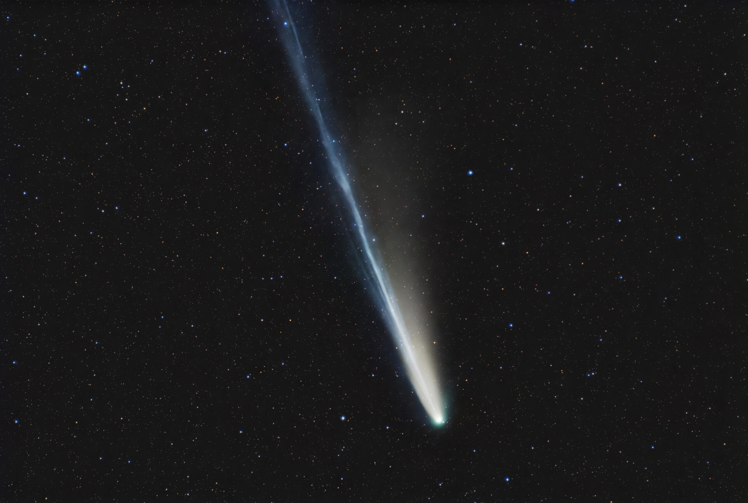 The impressive tail of Comet Lemmon (C/2025 A6) is on display, streaming away from the Sun, in this image taken the evening of Oct. 24. The imager stacked 15 one-minute exposures taken with a 180mm f/2.8 lens and a planetary camera.