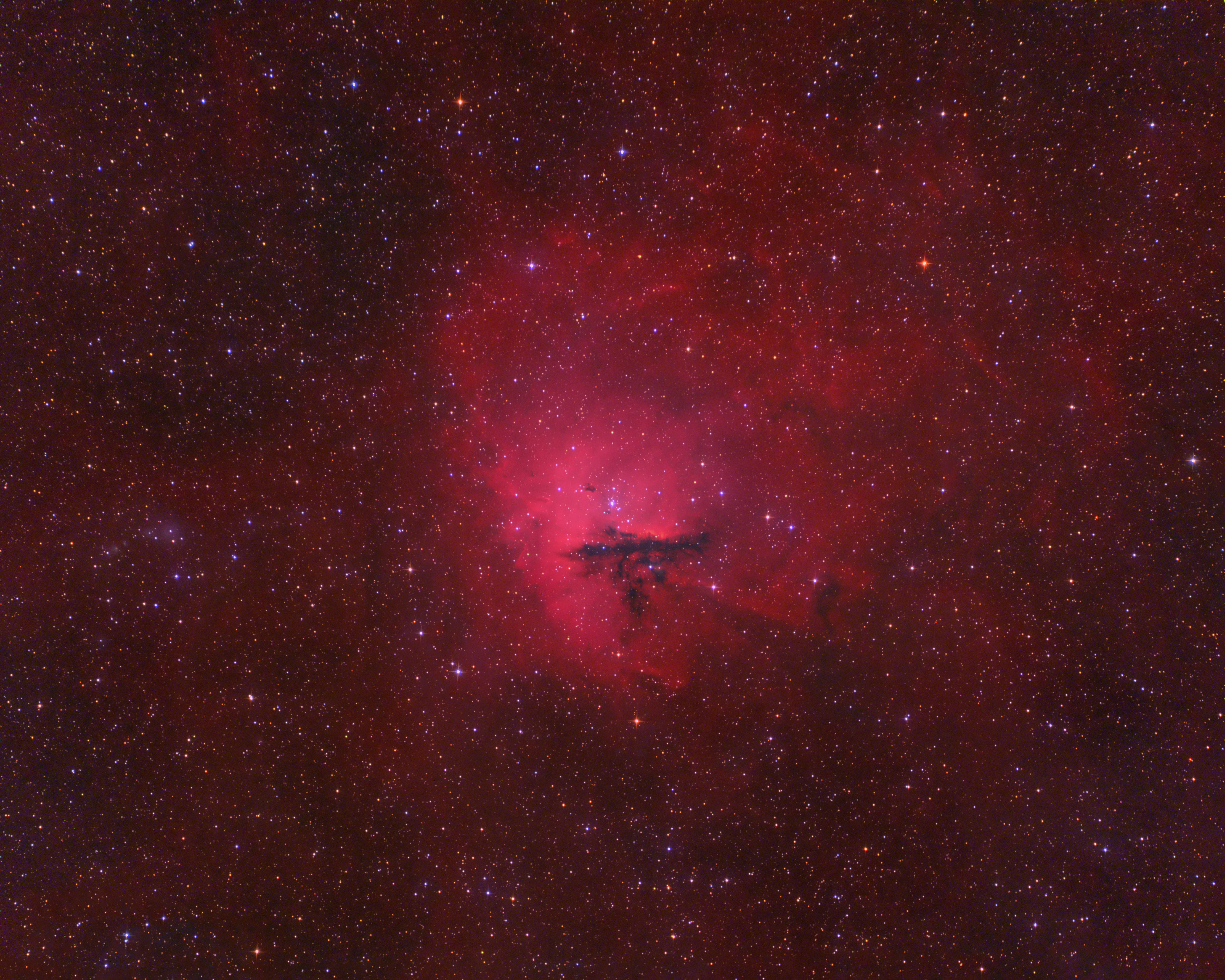 Back to Pic of the Day List Power-up Chris Schur, taken from Payson, Arizona NGC 281 is best known for its resemblance to Pac-Man, but beyond its bright circular region, diffuse waves of nebulosity ripple outward. This RGB image was taken over 10.25 hours with a 10-inch f/2.8 scope.