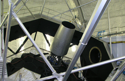 Soon we hear a loud, official “beep” and things start moving. The walls are turning, the telescope is slewing both vertically and horizontally, and my mind thinks the platform upon which we are standing is moving. Still, the telescope is surprisingly quiet and remarkably fast. The 10-meter parabolic mirror, made of hexagon panels with a one- or two-atom-thick coating of aluminum, is spectacular to watch. What a show!