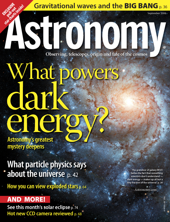 The September 2006 Astronomy magazine provides a special report on the latest discoveries in cosmology. The issue appears on newsstands August 1. Credit: NASA/ESA.