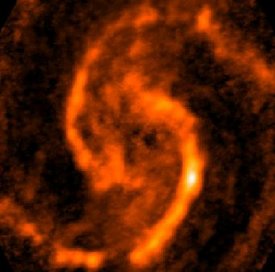 By analyzing the radio emissions from carbon monoxide in the huge gas clouds along M51’s arms, scientists were able to determine the temperature and turbulence of the clouds. Their results, which were presented at the 2004 meeting of the American Astronomical Society (AAS) in Denver, Colorado, support a 1964 theory that “density waves” explain how spiral arms can persist in a galaxy without winding themselves so tightly as to disappear.