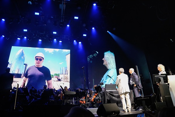 Caltech’s Kip Thorne joined the orchestra to narrate a musical treatment reflecting on the nature of black holes. May then joined the festivities to hammer out, with the orchestra and his friends, renditions of the Queen songs “’39,” “Who Wants to Live Forever,” — in a tribute to the departed Stephen Hawking — and, as a closer, “We Are the Champions.”