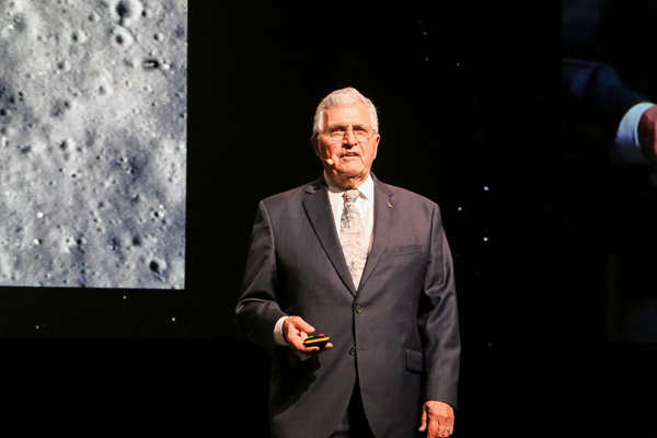 The talks on this day involved reminiscences from Apollo astronauts, celebrating the 50th anniversary of the Apollo 11 landing. Speakers included Walt Cunningham (Apollo 7), Al Worden (Apollo 15), Charlie Duke (Apollo 16), Jack Schmitt (Apollo 17), Gerry Griffin (Flight Director on multiple Apollo missions), and Rusty Schweickart (Apollo 9).