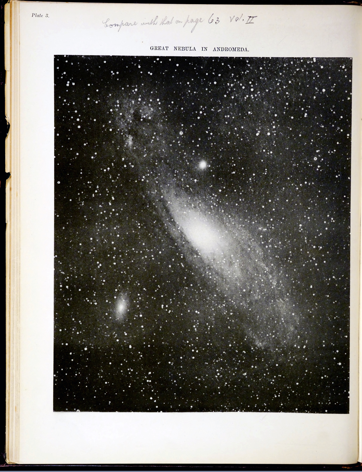 Roberts’ photograph of M31 revealed dust lanes that gave the object a clear spiral structure. This meant Andromeda joined the ranks of the growing subset of nebulae known to be spiral shaped, discovered a few decades earlier by William Parsons, Earle of Rosse. These complex structures gave even more fuel to the island universe hypothesis, suggesting they were more than simple gas clouds. But even the most sophisticated telescopes of the time were insufficient to allow for reliable spectroscopic examination of M31. The unveiling of Andromeda’s secrets would have to await further developments — and personalities.