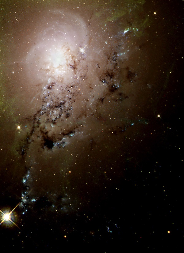 In the violent world of stars, gas, and interstellar dust, most galaxies that collide merge fully into a single chaotic object. “Minor mergers, those between a large and a small galaxy,” says Yale University astronomer Daniel Christlein, “may well be a normal part of galaxy life.”