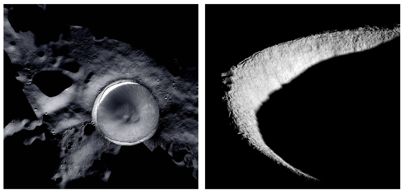 Today, these peaks are more than mere curiosity — they could be sites where lunar inhabitants farm solar power to keep critical systems consistently running. Although spacecraft including the European Space Agency’s SMART-1, Japan’s SELENE, and NASA’s Clementine and LRO have searched for such peaks of eternal light, they have found none. But several spots come close. One location on the rim of Shackleton Crater is illuminated for more than 90 percent of the lunar day/night cycle. A second location on a ridge just 10 miles (15 km) away, called Malapert Massif, sees sunlight some 98 percent of the time, making it a good candidate for a solar farm. Malapert is a fairly flat-topped mountain — more like a “hump of eternal light” — rising 16,400 feet (5,000 meters) above its surroundings. In addition to its many hours of sunlight, its near-level ground should make for good landing sites.