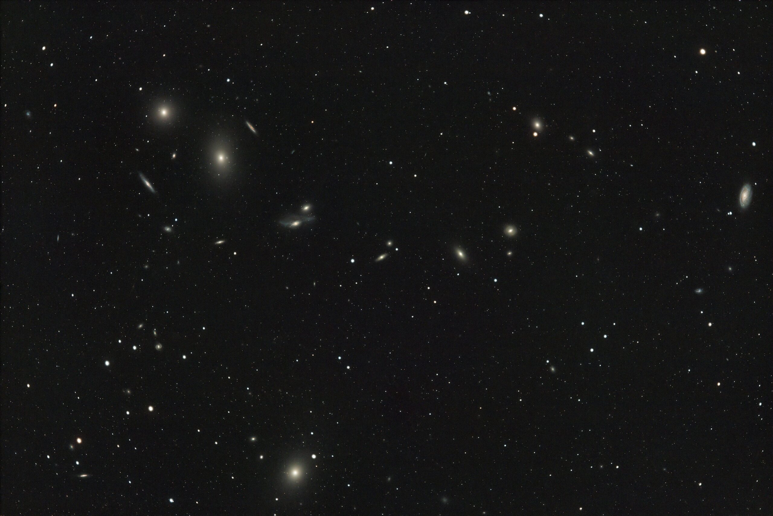 This time, I want to talk about a favorite area of the sky that’s really well placed this time of year. Of course, as we look toward the Milky Way, we’re seeing objects within our own galaxy along the Milky Way’s disk, for the most part. But the spring evening sky turns the Milky Way a bit away from us, and we can see out into what Edwin Hubble famously called “the realm of the galaxies.” And the closest big galaxy cluster to us, the Virgo Cluster of galaxies, is a great playground for amateur observers with telescopes and binoculars.